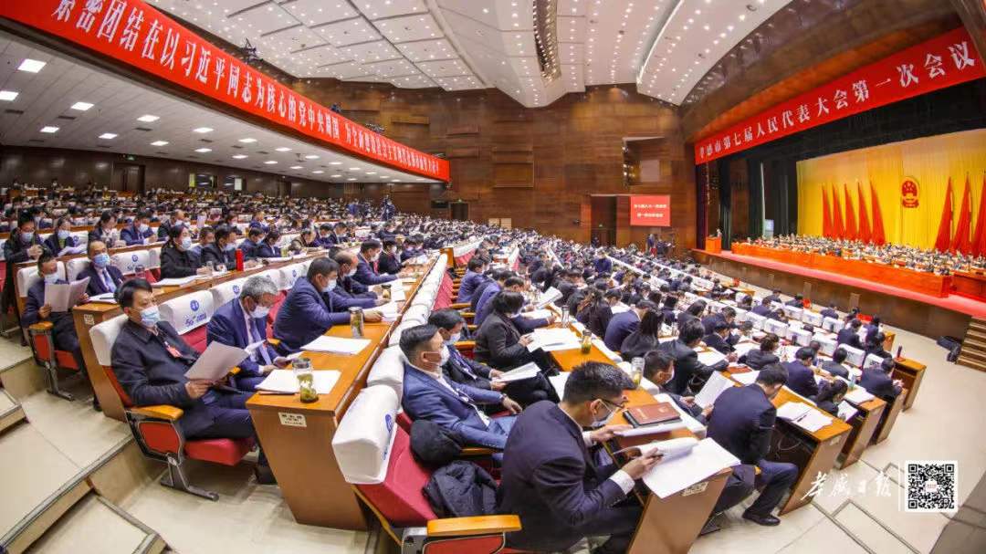 上午9時,吳海濤宣布孝感市第七屆人民代表大會第一次會議開幕全體起立,奏唱國歌.市長熊征宇向大會作政府工作報告。報告分三個部分:過去五年工作回顧、今后五年工作展望、2022年工作重點(diǎn)。